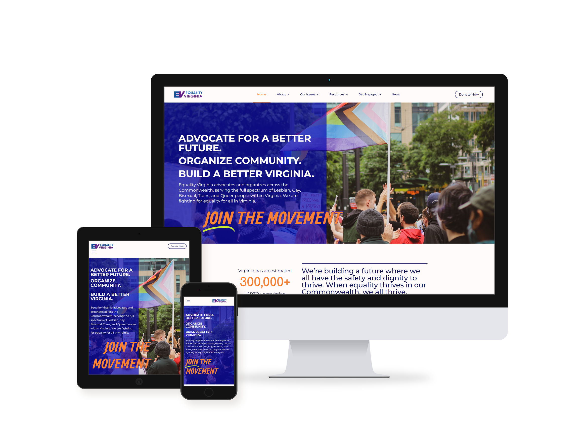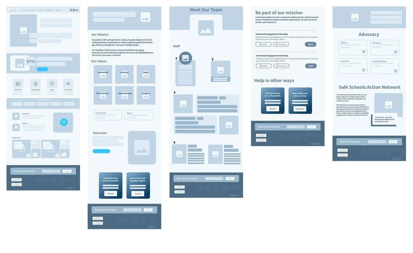 The project encompasses a range of tasks, including UI/UX design, visual rebranding, content restructuring, and technical optimization. The redesigned website will feature a simplified and intuitive navigation system, ensuring easy access to essential information and resources. Modern design elements, including typography, color schemes, and graphics, will be incorporated to reflect Equality Virginia's mission and enhance visual appeal. Special emphasis will be placed on ensuring the website's responsiveness across various devices.