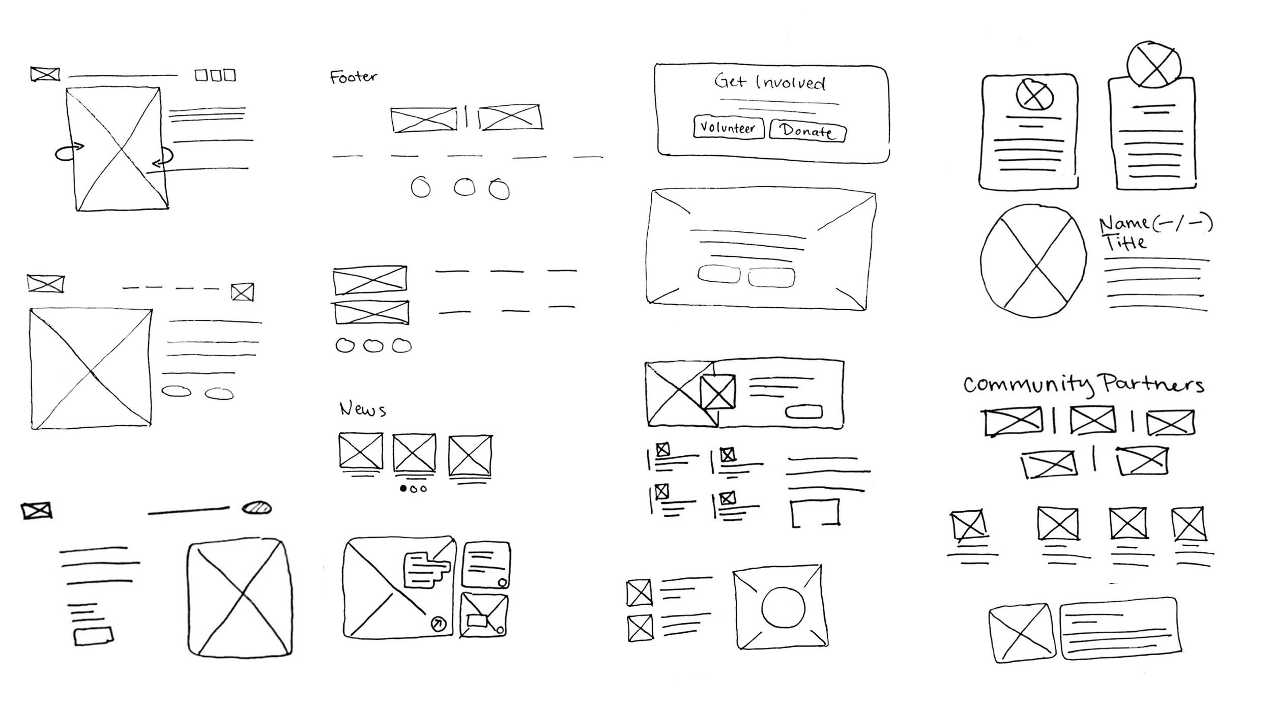 Lo-fi wireframes were created using pen and paper for easy editing and getting quick ideas on paper. This process was primary for construction of repeating and important layouts.