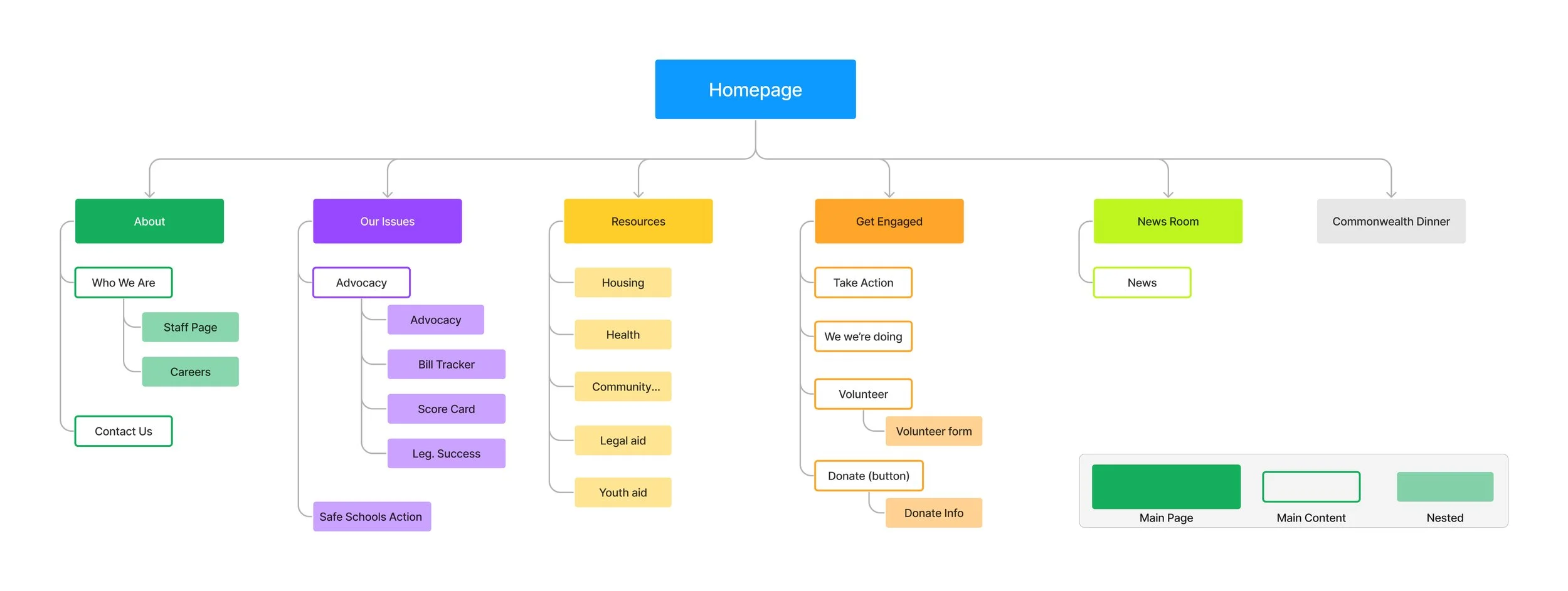 Creating a sitemap allowed the Equality Virginia’s team and myself decide on what’s most important and in what order the site will be categorized.